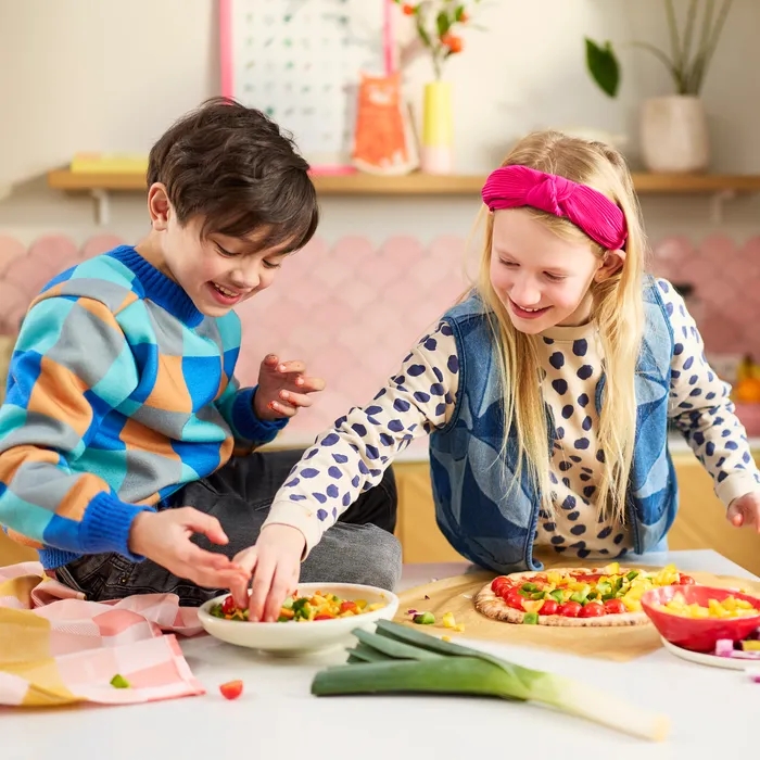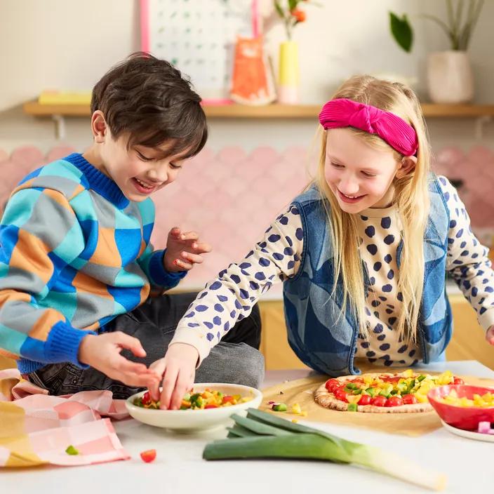 Met de groentepretpakketten maken kinderen zelf verrassende groente tussendoortjes, die ze met een vrolijk eetspelletje opeten. Van wortelcake tot Kabouterpizza van courgette – de pakketten wisselen regelmatig en bevatten alles wat je nodig hebt, van verse groente tot bakmixen en een kindvriendelijke recept- en spelkaart.