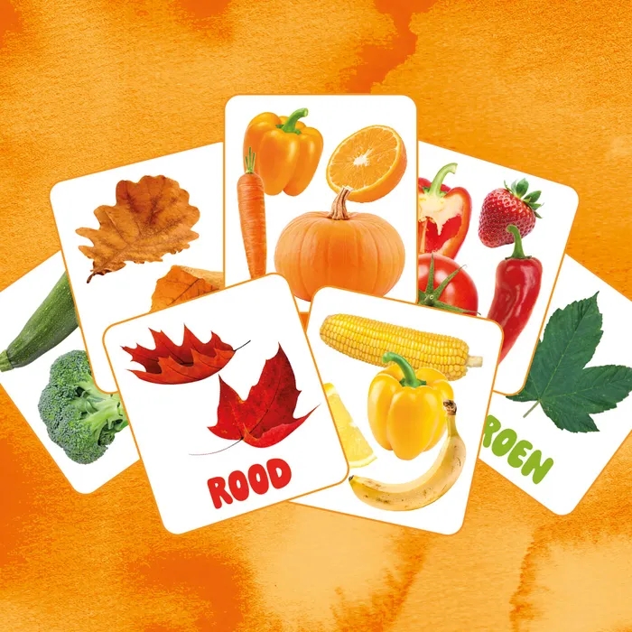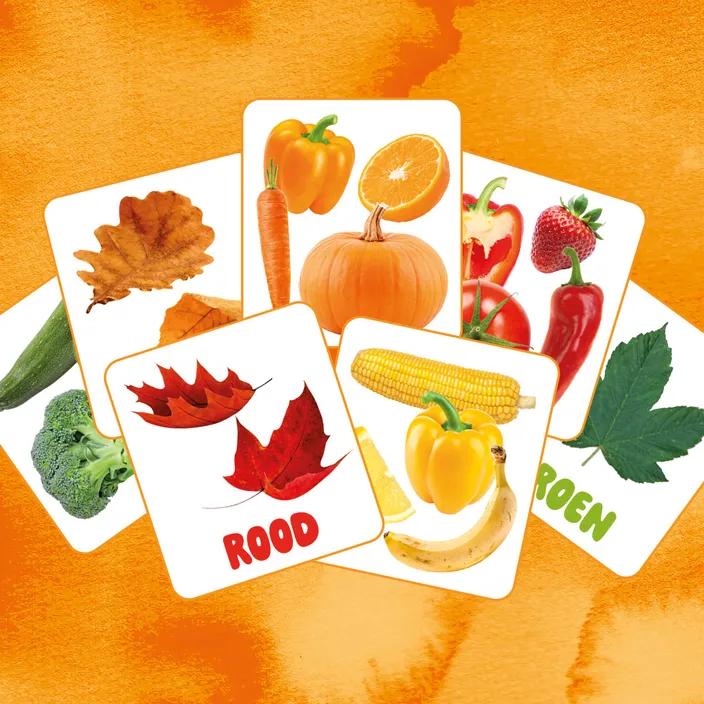 De blaadjes aan de bomen worden rood, oranje en geel! Kunnen jullie de gekleurde blaadjes bij dezelfde kleur groenten en fruit leggen?