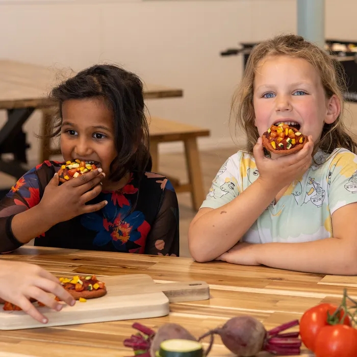 Met het Pizzetta & Games pakket geef je kinderen het beste van twee werelden: samen koken én samen spelen. Ze maken hun eigen kleurrijke bietenpizzetta’s en ontdekken groenten en fruit via vrolijke spellen. Zo wordt gezond eten niet iets dat moet, maar iets waar je samen plezier aan beleeft!