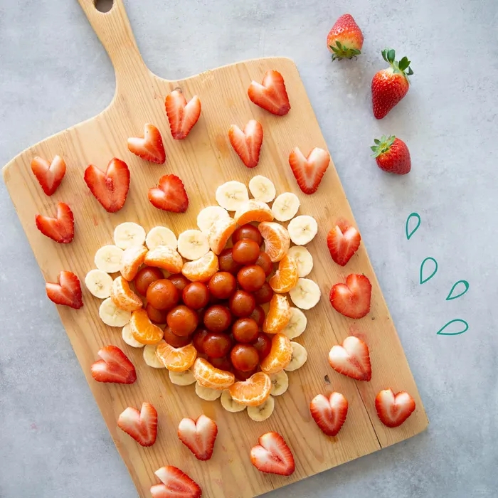- Snijd de banaan in plakjes en leg vorm een hart op de plank.