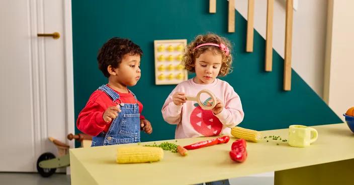 Samen liedjes zingen, daar houdt toch iedere peuter van! En het is niet alleen ontzettend leuk, maar het draagt ook bij aan de taalontwikkeling en geheugen van de kinderen. Zet vrolijke muziek op en moedig ze aan om mee te zingen. Liedjes zoals ‘smakelijk eten’ of liedjes over groente en fruit, zijn perfect om hen actief en betrokken te houden bij het eetmoment. En zitten ze nog vol energie? Moedig dan aan om ook samen te dansen of geef ze instrumenten zoals rammelaars of kleine trommeltjes.