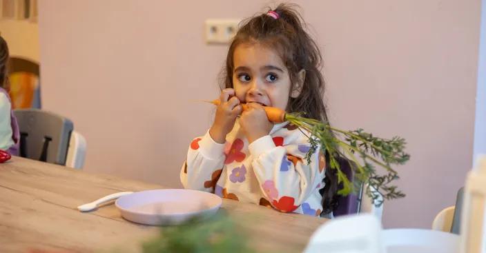 Kindjes zijn ’s avonds vaak moeier, net op het moment dat jij hoopt dat er wat groente ingaat. Daarom werkt het lekker om meerdere groentemomenten in te bouwen: een kommetje soep, dat bakje wortelen of een boterham of cracker met groentespread.